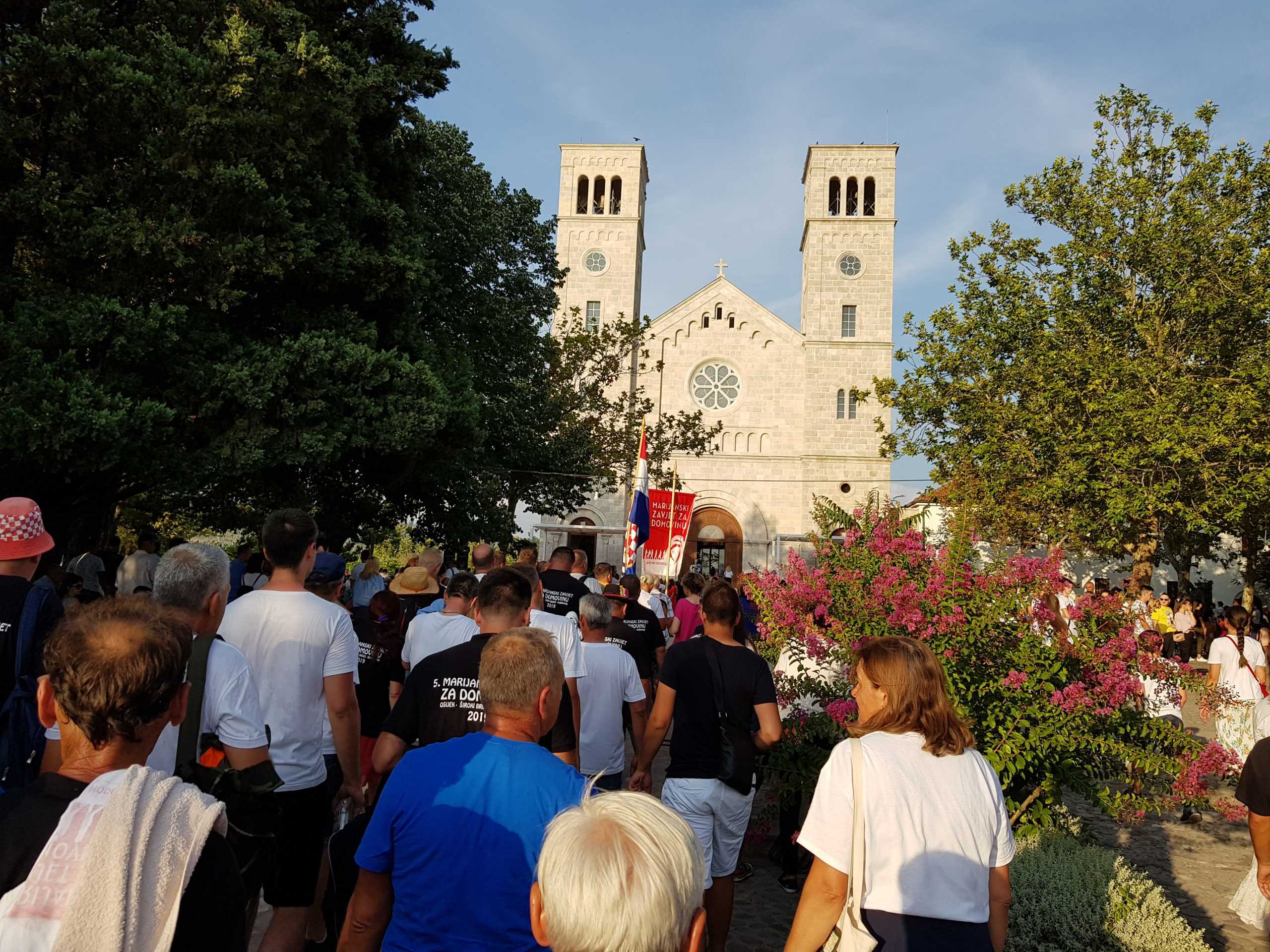 Svojom gostoljubivošću se iskazala i benzinska crpka Bagarić, kojoj zahvaljujemo, a nakon koje smo zaboravili na žeđ i umor te odvažnim korakom krenuli prema Širokom Brijegu, gdje smo se smjestili u Zavodu Svete obitelji. Nakon obroka smo se osvježili i krenuli prema crkvi Uznesenja Blažene Djevice Marije koja se nalazi na brdu na drugoj strani grada. To je značiolo još dodatnih par kilometara. Svetu misu je predvodio fra Iko Skoko, vikar Hercegovačke franjevačke provincije Uznesenja BDM, koji je dodatno posvijestio važnost sakramenta ženidbe brojnim vjernicima okupljenima na svečanu misu u sklopu devetnice Velikoj Gospi. Sv. misu dodatno je uveličao pjesmom zbor Frame Široki Brijeg, koji je povodom 25. godišnjice nakon mise održao i koncert.