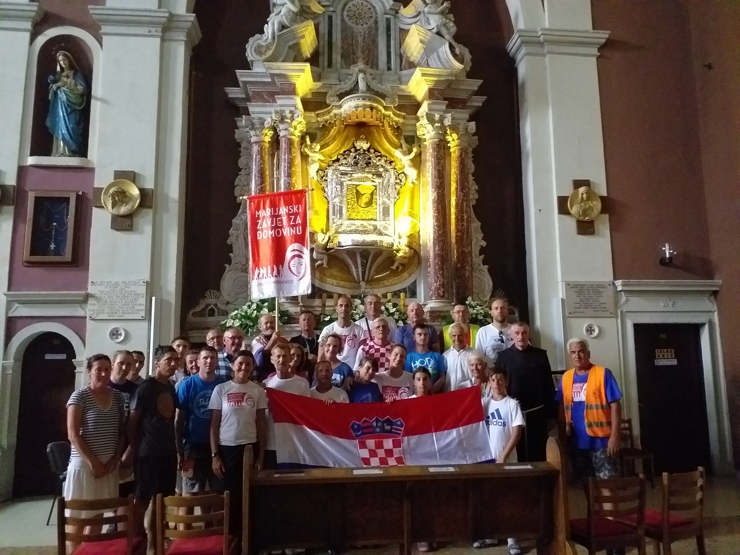 Ubrzo smo stigli u Sinj, u svetište Gospe Sinjske gdje nas je dočekao gvardijan fra Ante Čovo, koji nam je ispričao o slici Čudotvorne Gospe Sinjske, i o obrani od Turaka po njenom zagovoru. Zatim smo se pomolili Gospi Sinjskoj.