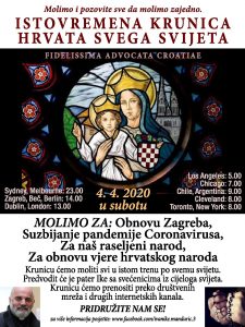 Danas, 4.travnja u 14:00 po hrvatskom vremenu molimo krunicu sa Hrvatima iz svega svijeta. Ujedinimo se u molitvi. Ujedinimo Hrvatsku u...